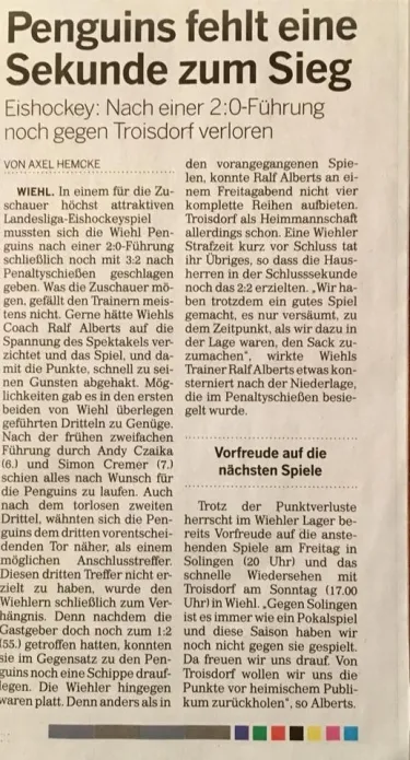 Alpha Penguins mit Kantersieg im 4. Spiel gegen Erzrivalen Troisdorf!